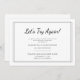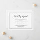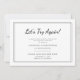 Announce to your family a friends a change of your wedding date with this simple and stylish card. The design features a clean white background with a black border and the greeting "Let's Try Again!" Custom text allows you to add the names of the bride and groom and a new wedding date and location.