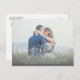 Hand lettered white script overlay design photo wedding CHANGE the date announcement card - horizontal. Send out your change the date cards as newly engaged couple to your friends and family using this beautifully, simple save the date postcard with a white handwriting script text overlay design. Design by Elke Clarke© . Replace the sample photo with your own. Add your personal information on the front and on the back.