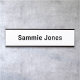 Easily personalize this changeable door name plate with your name or other custom text. You can customize the white background color. Available in other metal colors in two sizes – standard 2 inch x 8 inch or long 2 inch x 10 inch – and in two styles – as a door name plate or a desk name plate. No minimum order quantity and no setup fee.