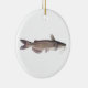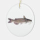 Designed for freshwater fishing enthusiasts and seafood lovers, this ornament includes channel catfish icons on front and back. The channel catfish is one of the most popular freshwater fish species in North America. In addition to wild fish, farmers raise channel catfish for human consumption.