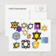Send your friends and family this Channukka post card this year! Decorative Jewish Stars on the cover and on back black print states, "Happy Channukkah!".
