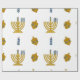 This Chanukah wrapping paper features hand drawn Chanukah items including a Chanukiah Menorah (Chanukiah), Dreidel, and candles.