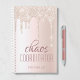 Chaos Coordinator Chic Girly Glitter Personalized Planner features the text "chaos coordinator" in elegant script on a chic soft pink glitter drip background. Perfect for that busy mom, teacher, sports team manager or work boss. Designed by ©Evco Studio www.zazzle.com/store/evcostudio