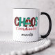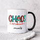 A fun coffee mug for mom that says "Chaos Coordinator" in orange and teal and just a little bit of leopard print.