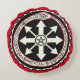Round throw pillow with VooDoo symbols, in red and black. Very unique!