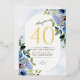 Chapter 40 Blue Floral 40th Birthday Gold Foil Invitation