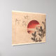 Characteristic Japanese landscape with Animals, rising sun, nature and lakes. On wooden base