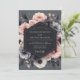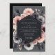 A romantic and dramatic floral design features a stunning contrast of soft blush pink and deep charcoal grey tones. Lush, painterly arrangements showcase delicate blush roses, ethereal white anemones, and moody dark blossoms. Dark, elegant foliage completes this sophisticated and artistic composition for a modern affair.