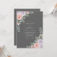 This elegant design features a deep charcoal gray background that provides a striking contrast to the soft floral elements. Lush pink and lavender peonies are nestled amongst silver dollar eucalyptus and wispy green ferns. The botanical clusters create a balanced and sophisticated aesthetic. Perfect for a moody romantic evening or a refined seasonal affair.