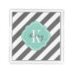 Charcoal Gray and Aqua Preppy Stripes Monogram Acrylic Tray