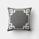 Charcoal Gray and White Greek Key Script Monogram Throw Pillow