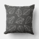 Charcoal Gray and White Leaf Pattern Throw Pillow