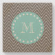 Charcoal Gray Chevron Pattern | Teal Monogram Stone Coaster
