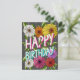 Charcoal Gray Floral Personalized Happy Birthday Postcard
