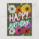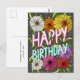 Looking for a floral happy birthday postcard? Look to our Colorful Charcoal Gray Floral Personalized Happy Birthday postcard! Celebrate someone special with this unique, hand-drawn floral birthday postcard. Adorned with vibrant daisies in shades of white, orange, red, pink, yellow, and purple, the design blooms with joy. Delicate white flowers create a soft background, while ‘Happy Birthday’ elegantly intertwines with the blossoms. Personalize it with a message inside or leave it blank for a simple, heartfelt touch.