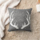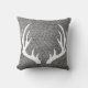 Charcoal Gray Herringbone & White Deer Antlers Throw Pillow