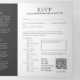 Charcoal gray hand-drawn botanical leaf wedding invitation custom all-in-one with detachable RSVP, Monogram, QR Code design. Create the perfect first impression with this elegant charcoal gray, hand-drawn botanical leaf wedding invitation. Featuring a customizable all-in-one design, this invitation includes space for your ceremony details, schedule, accommodation information, meal options, and a detachable RSVP with a unique QR code for easy online booking or details access. The simple yet sophisticated leaf design encircles your custom monogram initials, adding a personal touch to your special day. This modern wedding invitation is available in charcoal gray and white with optional color variations, as well as matching items for a cohesive wedding suite. © Original leaf ink hand drawing and design by Sarah Trett for www.mylittleedenweddings.com on Zazzle.