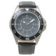 A dark, solid color "Charcoal Gray" Men's Watch with white roman numerals. Charcoal Gray is a very dark grayish blue. Click on "Customize" to change color or to add a pattern or design. Product Hex Code: #36454f