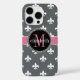 Charcoal Gray White Pink Fleur de Lis Monogram Case-Mate iPhone Case