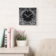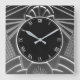"art deco clock", "art nouveau clock", "dark charcoal grey gray", "1920s geometric symmetrical lines", "stylish sophisticated 1920 style", "black and white", "retro vintage luxurious antique", "elegant line pattern design", "glamorous glam square clock", "classy classic glamor"
