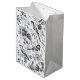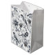 This gift bag is adorned with a charming French-inspired toile design, showcasing magnificent birds in hues of charcoal grey amidst foliage in grey and black.
