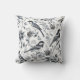 This accent throw pillow is adorned with a charming French-inspired toile design, showcasing magnificent birds in hues of charcoal grey amidst foliage in grey and black.
