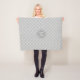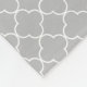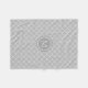 Custom monogram blanket in charcoal grey and white Moroccan quatrefoil lattice pattern.