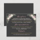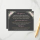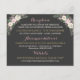 Present your reception, accommodations, and wedding website information on this elegant details card featuring corner floral arrangements of rose pink peonies and sage greenery on a rich charcoal background. Pink calligraphy headers and cream text create a beautifully organized layout against the dark backdrop. All text is fully customizable. Designed to coordinate with the matching charcoal floral suite.