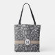 Charcoal Gray and White Rustic Winter Botanical Leaves with Classic Monogram Tote Bag.