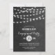 Chic modern summer wedding engagement party invitation design with simple elegant glowing string lights hanging across the top and a classy mix of modern and calligraphy script fonts on a printed faux watercolor texture background. A simple and stylish preppy design, perfect for summer! Click the CUSTOMIZE IT button to customize fonts, move text around and create your own unique one-of-a-kind invitation design.