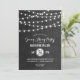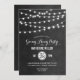 Chic modern summer going away party invitation design with simple elegant glowing string lights hanging across the top and a classy mix of modern and calligraphy script fonts on a printed faux watercolor texture background. A simple and stylish preppy design, perfect for summer! Click the CUSTOMIZE IT button to customize fonts, move text around and create your own unique one-of-a-kind invitation design.