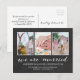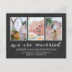 Beautiful wedding announcement postcard with room for three of your favorite wedding photos! We are married is written in a lovely white calligraphy script against a dark gray background with a faint marble look. Also add your names and wedding date, and on the back, a personal note to all your loved ones!