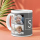 Charcoal White 8 Photo Collage Custom Monogram Giant Coffee Mug