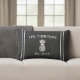 Our rustic chic throw pillow features your family name and year established in white lettering with rope stripe accents, on a rich charcoal grey background. A pineapple silhouette illustration completes the design for a modern farmhouse style look.