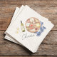 Personalize your wine and cheese party with these casual elegant custom napkins. Design features watercolor illustrations of a charcuterie board filled with cheese, meat, and fruit, alongside a bottle of white wine and two glasses. "Cheers" appears beneath in handwritten script lettering. Personalize the bottle of wine with an initial for a special touch.