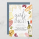 Invite friends for a wine and cheese girls' night out (or in!) with these casual chic invitations. Design features your celebration details in modern lettering, surrounded by illustrations of cheeses, meats, bread and fruit. Personalize the wine bottle with an initial for a special finishing touch.