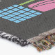A quality printed throw has its advantages. This is a much finer weave throw than its loopier cousins, and though lighter, it is worth the investment for custom room accessorizing. The back is much prettier than the typical brown, and the fringe on the long sides very vivid, the selvage nicely done. Before photographing, I washed the throw in cold water, delicate, with a thicker woven throw the same size. On tumble dry low, this throw was dry in half the time as the other. This is a very practical quality if you use throws for furniture covers or to wrap up in frequently. The sleekness of the fabric makes it a great layer for accenting or protecting without the feeling of sitting on too much stuff. Perfect for napping or when you feel a light chill coming on. The color printing is beautiful and on this fabric, matched the design and color of my Photoshop image. This is an advantage for blending room fabrics and colors. The fringe on the short sides prints the colors from the design image and therefore varies from the side fringe. I streaked a white fractal line through the plaid pattern to give the illusion of weaving. This printed as crisp as an illusory thread, and put some white in the short side fringe, showing another advantage of print vs loomed- for artistic purposes, line lines, detail, and color integrity can be planned and preserved. My loomed throws have color limitations and more of a needlepoint texture. Print throws reproduce an exact image. The throw felt a little stiff straight out of the package, but this went away in the first delicate wash. Of course I searched the wash water for ink or bleeding and there was none.
