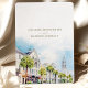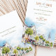 Announce your wedding with this elegant "Save the Date" card, featuring a watercolor depiction of Charleston, South Carolina. The design captures the city's historic charm, showcasing classic Southern architecture, palm trees, and a pastel blue sky. The warm beige and soft gray tones of the buildings blend beautifully with touches of green from the foliage, evoking a sense of Southern grace and hospitality. The card's typography, combining modern fonts with delicate script, adds sophistication to the overall look, making it perfect for a destination wedding in the heart of Charleston's historic district.