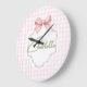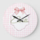 Charlotte Personalized Pink Bow & Gingham Print Large Clock