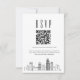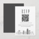 A minimal wedding rsvp QR code card featuring a stylized skyline representing the beautiful city of Charlotte. Replace the QR code with one featuring a link to your website to help make responding to your wedding event easier for your future guests.