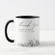 Modern Charlotte skyline coffee mug favor gift with "thank you" script. The design showcases a stunning sketch with the ability to customize your names and exact location. Enter the Zazzle design tool for additional customizations.