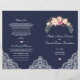 Charm Blush Pink Flowers Lace Navy Wedding Program Flyer