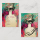 Elegant and whimsical lady with a sophisticated venetian feather mask in vibrant pink,green,fuchsia,black,white colors, inspired from Comedy of Art (Commedia dell' Arte ) and Carnival of Venice , watercolor painting with gold and silver foil .