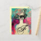 Elegant ,whimsical lady with a sophisticated Venetian feather mask in vibrant pink,green,fuchsia,black,white colors, inspired from Comedy of Art (Commedia dell' Arte ) and Carnival of Venice ,watercolor painting with gold and silver foil .Easy to customize with your own text as a wedding favor ,save-the-date, thank you, bridal showers, birthday parties: sweet 16,quinceanera ,engagement showers, New Year's Day masquerade party, graduations ,anniversaries,or just about any event you wish!