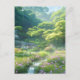 This digital piece of art captures a summer garden in all its splendor. A small stream bounces on the rocks in the foreground, adding a refreshing and lively touch to the artwork. Pink flowers are dotted around the garden, which is also covered with towering greenery, rich green grass, and other colorful elements. It is a celebration of the colorful and dynamic world that surrounds us, a world that inspires us to be present and appreciative of the beauty that exists in every moment.