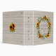 Elegant design featuring gorgeous watercolour sunflowers wreath, on an old barn wood background. Use Personalize tool to add your info, make changes.