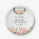 Charm Pink Blush Flowers Antlers Monogram Wedding Paper Plates