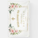 Luxury, Unique card design featuring watercolour delicate pink blush flowers bouquets, faux gold broken frame, faux gold cross, on a white background. Use Personalise tool to add your info. For matching items, please, visit my New Baptism/Christening Celebration Collection.