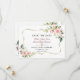 Elegant card design featuring watercolour pink blush flowers and green leaves, a faux gold frame, floral divider, on a white background. On the back blush flowers bouquet. Use Personalise tool to add your info, change fonts, font's colours. For matching items, please, visit my Blush Cream Flowers Collection.