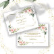 Elegant card design featuring watercolour pink blush flowers and green leaves, a faux gold frame, on a white background. On the back blush flowers bouquet. Use Personalise tool to add your info, change fonts, font's colours. For matching items, please, visit my Blush Cream Flowers Collection.